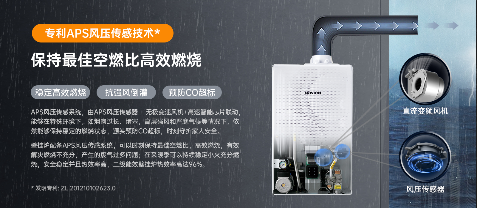 專利APS風(fēng)壓傳感系統(tǒng)(專利號(hào):ZL 201210102623.0) 更加充實(shí)的舒適的供暖和豐富的生活熱水