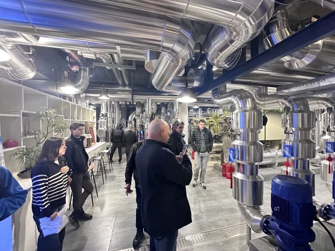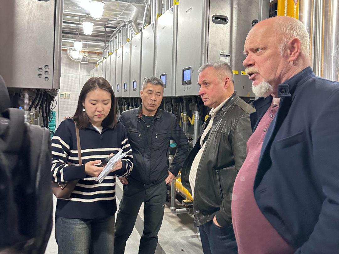 第二站,參觀團(tuán)隊前往北京興濤社區(qū),這里100臺NFB-98HC并聯(lián)系統(tǒng)的高效運轉(zhuǎn)讓俄羅斯伙伴嘖嘖稱奇。這套系統(tǒng)以其智能調(diào)節(jié)和節(jié)能環(huán)保性能成為城市供暖的“隱形英雄”。尤其是煙氣余熱回收技術(shù),將排煙溫度降至20℃以下,不僅顯著減少了能源浪費,還有效解決了冬季“白煙滾滾”的困擾。這一技術(shù)憑借其高效節(jié)能和環(huán)境友好的特點,展現(xiàn)了廣泛的應(yīng)用潛力,贏得了國際合作伙伴的高度評價,被認(rèn)為在寒冷地區(qū)具有重要的推廣價值。更值得一提的是,通過遠(yuǎn)程智能APP控制,社區(qū)供暖實現(xiàn)了無人化管理,大大降低了運營成本,也為未來城市供暖方案提供了新方向。